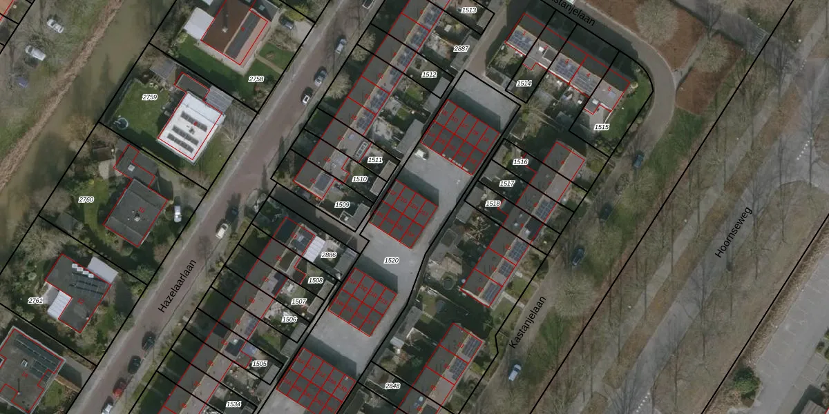 Het perceel waarop Hazelaarlaan 21-h staat heeft een oppervlakte van 1545 m². Dit is een zeer groot perceel. De perceeloppervlakte wordt geregistreerd door het Kadaster. Gedetailleerde informatie over de maten van dit perceel kunt u vinden in het rapport Kadastrale kaart met maatvoering van Hazelaarlaan 21-h.