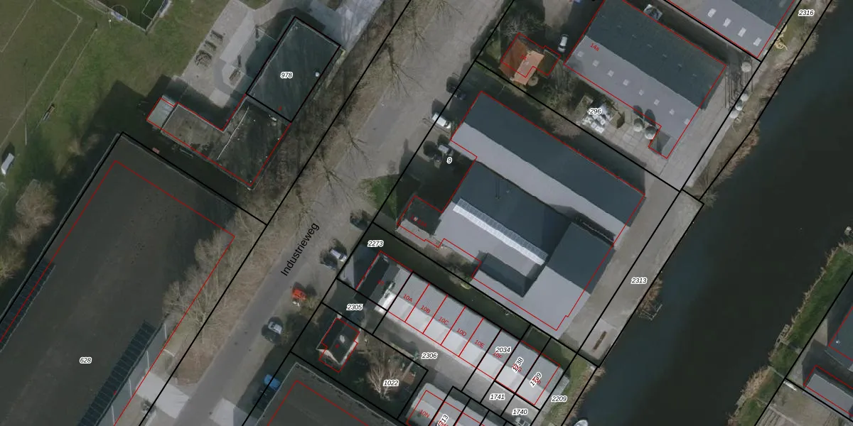 Het perceel waarop Industrieweg 12 staat heeft een oppervlakte van 2567 m². Dit is een zeer groot perceel. De perceeloppervlakte wordt geregistreerd door het Kadaster. Gedetailleerde informatie over de maten van dit perceel kunt u vinden in het rapport Kadastrale kaart met maatvoering van Industrieweg 12.