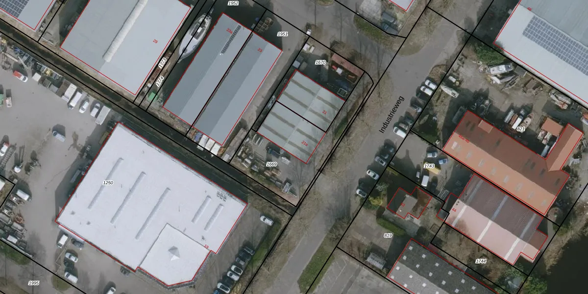 Het perceel waarop Industrieweg 21-a staat heeft een oppervlakte van 825 m². Dit is een groot perceel. De perceeloppervlakte wordt geregistreerd door het Kadaster. Gedetailleerde informatie over de maten van dit perceel kunt u vinden in het rapport Kadastrale kaart met maatvoering van Industrieweg 21-a.