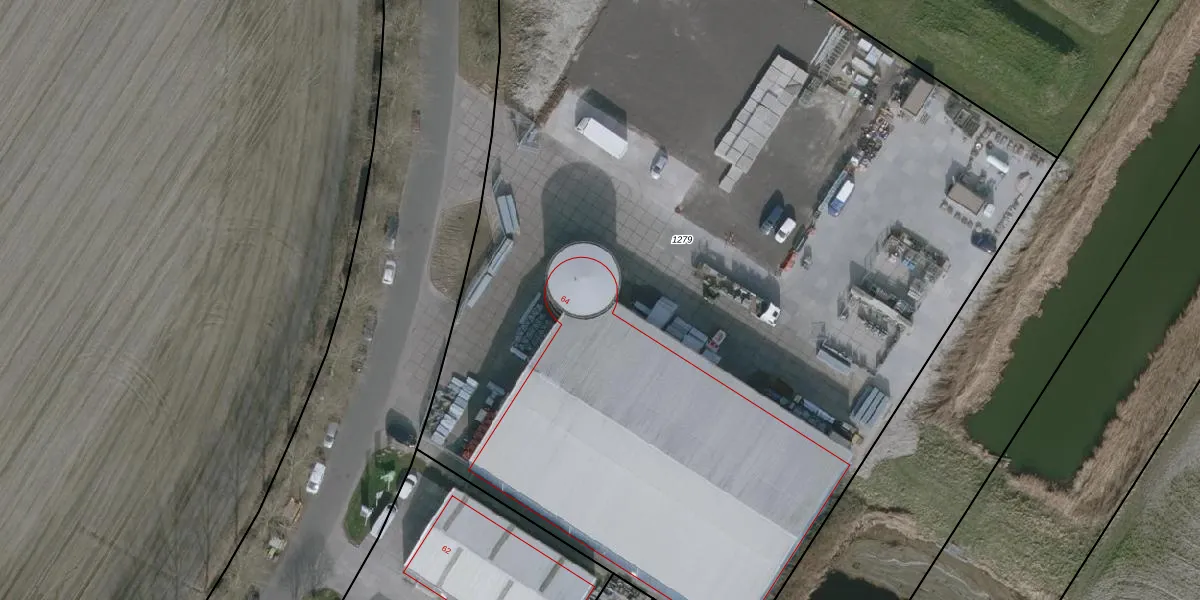 Het perceel waarop Industrieweg 64-a staat heeft een oppervlakte van 8150 m². Dit is een zeer groot perceel. De perceeloppervlakte wordt geregistreerd door het Kadaster. Gedetailleerde informatie over de maten van dit perceel kunt u vinden in het rapport Kadastrale kaart met maatvoering van Industrieweg 64-a.