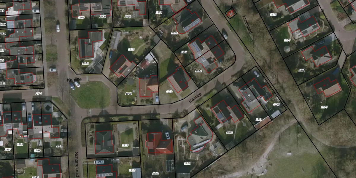 Het perceel waarop Kamille 16 staat heeft een oppervlakte van 527 m². Dit is een groot perceel. De perceeloppervlakte wordt geregistreerd door het Kadaster. Gedetailleerde informatie over de maten van dit perceel kunt u vinden in het rapport Kadastrale kaart met maatvoering van Kamille 16.