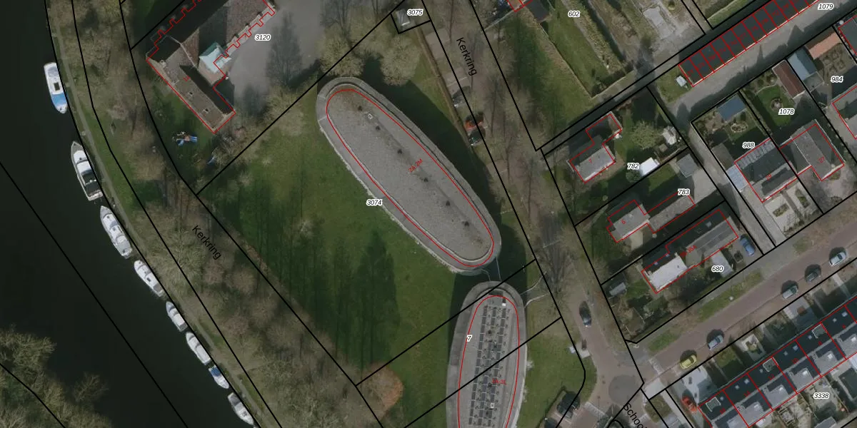 Het perceel waarop Kerkring 2-j staat heeft een oppervlakte van 3717 m². Dit is een zeer groot perceel. De perceeloppervlakte wordt geregistreerd door het Kadaster. Gedetailleerde informatie over de maten van dit perceel kunt u vinden in het rapport Kadastrale kaart met maatvoering van Kerkring 2-j.