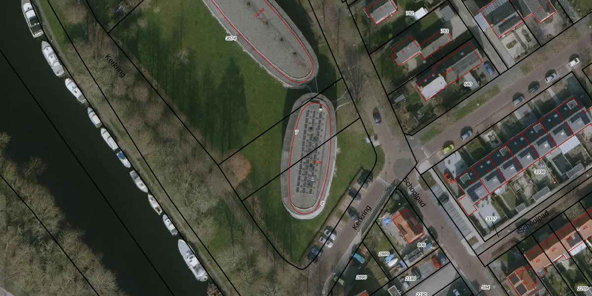 Het perceel waarop Kerkring 3-j staat heeft een oppervlakte van 742 m². Dit is een groot perceel. De perceeloppervlakte wordt geregistreerd door het Kadaster. Gedetailleerde informatie over de maten van dit perceel kunt u vinden in het rapport Kadastrale kaart met maatvoering van Kerkring 3-j.