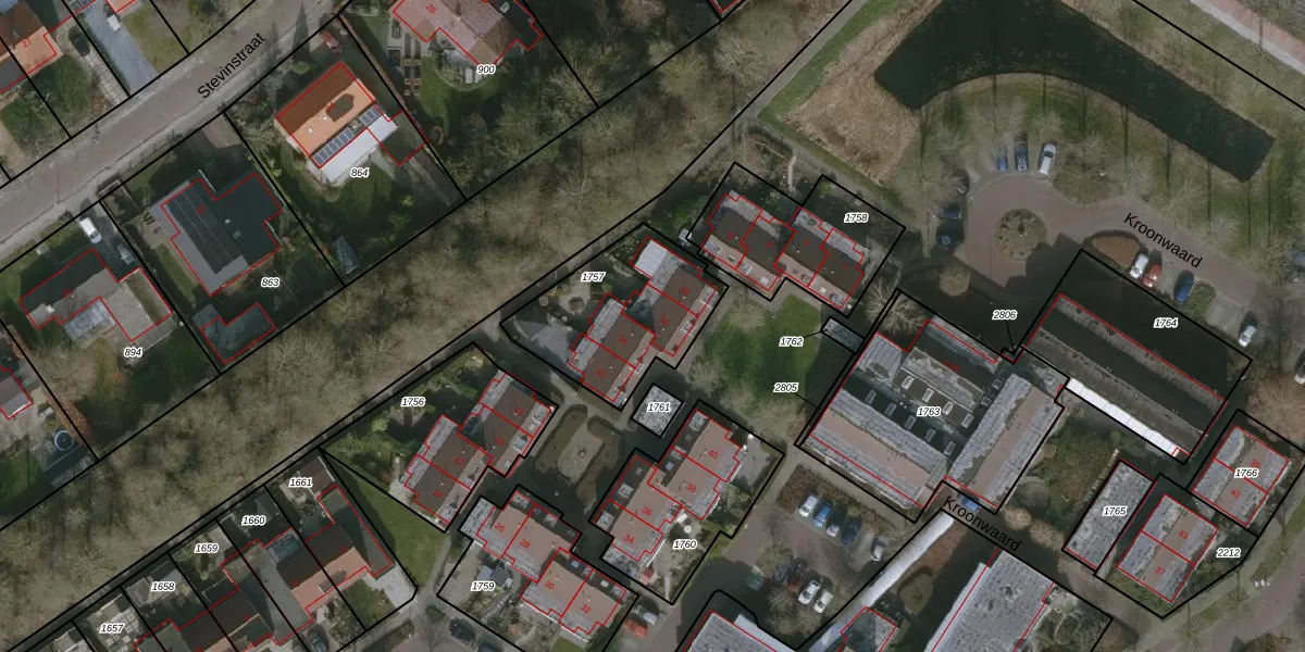 Het perceel waarop Kroonwaard 12 staat heeft een oppervlakte van 520 m². Dit is een groot perceel. De perceeloppervlakte wordt geregistreerd door het Kadaster. Gedetailleerde informatie over de maten van dit perceel kunt u vinden in het rapport Kadastrale kaart met maatvoering van Kroonwaard 12.
