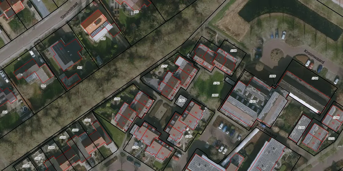 Het perceel waarop Kroonwaard 14 staat heeft een oppervlakte van 520 m². Dit is een groot perceel. De perceeloppervlakte wordt geregistreerd door het Kadaster. Gedetailleerde informatie over de maten van dit perceel kunt u vinden in het rapport Kadastrale kaart met maatvoering van Kroonwaard 14.