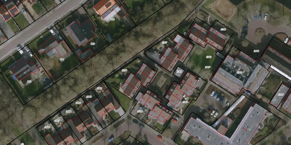 Het perceel waarop Kroonwaard 18 staat heeft een oppervlakte van 515 m². Dit is een groot perceel. De perceeloppervlakte wordt geregistreerd door het Kadaster. Gedetailleerde informatie over de maten van dit perceel kunt u vinden in het rapport Kadastrale kaart met maatvoering van Kroonwaard 18.