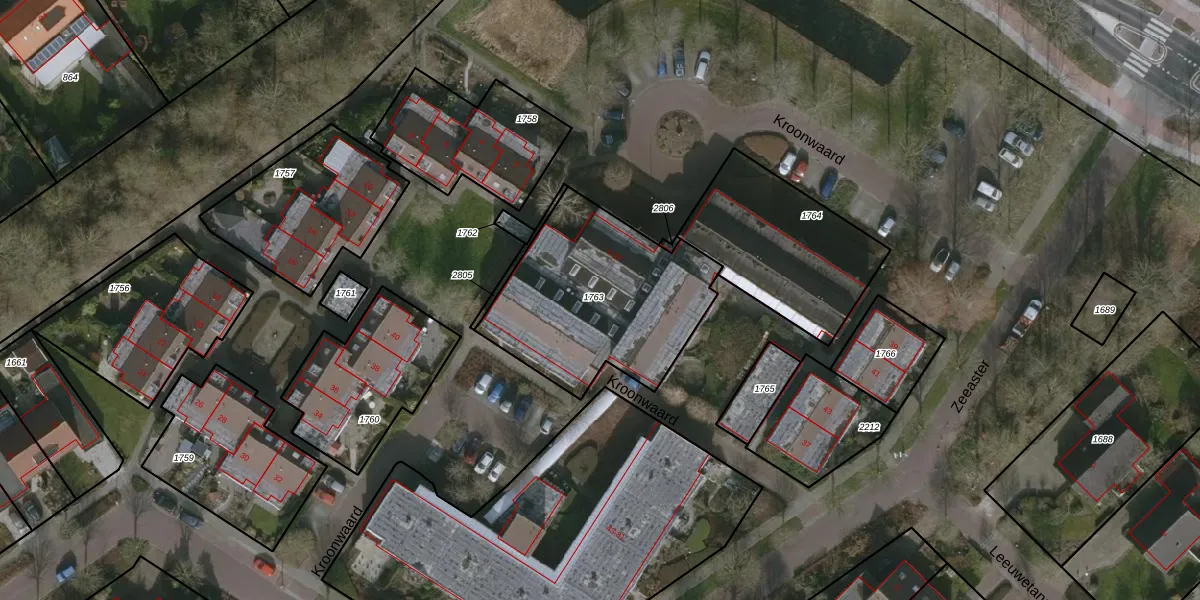 Het perceel waarop Kroonwaard 23 staat heeft een oppervlakte van 830 m². Dit is een groot perceel. De perceeloppervlakte wordt geregistreerd door het Kadaster. Gedetailleerde informatie over de maten van dit perceel kunt u vinden in het rapport Kadastrale kaart met maatvoering van Kroonwaard 23.