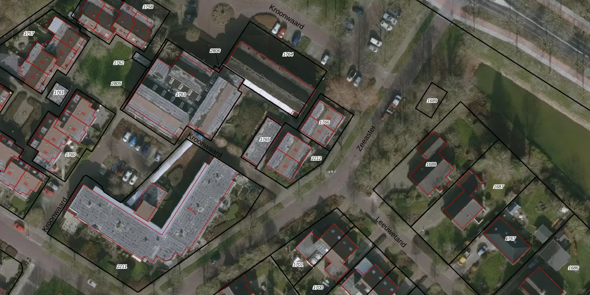 Het perceel waarop Kroonwaard 43 staat heeft een oppervlakte van 295 m². Dit is een middelgroot perceel. De perceeloppervlakte wordt geregistreerd door het Kadaster. Gedetailleerde informatie over de maten van dit perceel kunt u vinden in het rapport Kadastrale kaart met maatvoering van Kroonwaard 43.