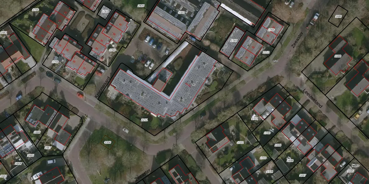 Het perceel waarop Kroonwaard 73 staat heeft een oppervlakte van 1916 m². Dit is een zeer groot perceel. De perceeloppervlakte wordt geregistreerd door het Kadaster. Gedetailleerde informatie over de maten van dit perceel kunt u vinden in het rapport Kadastrale kaart met maatvoering van Kroonwaard 73.