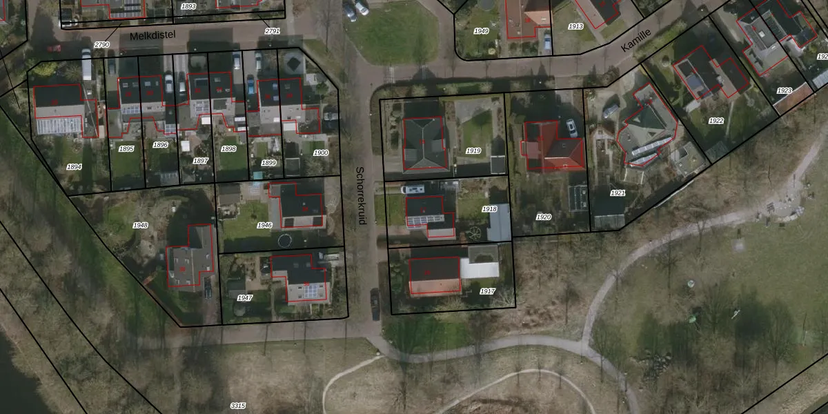 Het perceel waarop Schorrekruid 17 staat heeft een oppervlakte van 485 m². Dit is een groot perceel. De perceeloppervlakte wordt geregistreerd door het Kadaster. Gedetailleerde informatie over de maten van dit perceel kunt u vinden in het rapport Kadastrale kaart met maatvoering van Schorrekruid 17.