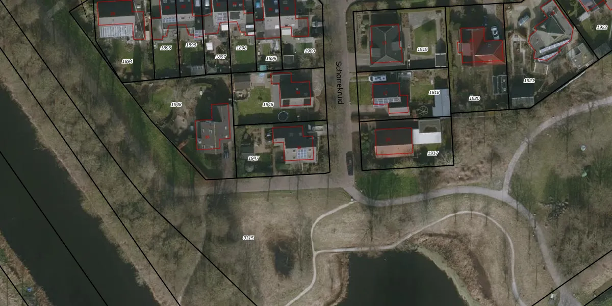 Het perceel waarop Schorrekruid 36 staat heeft een oppervlakte van 528 m². Dit is een groot perceel. De perceeloppervlakte wordt geregistreerd door het Kadaster. Gedetailleerde informatie over de maten van dit perceel kunt u vinden in het rapport Kadastrale kaart met maatvoering van Schorrekruid 36.
