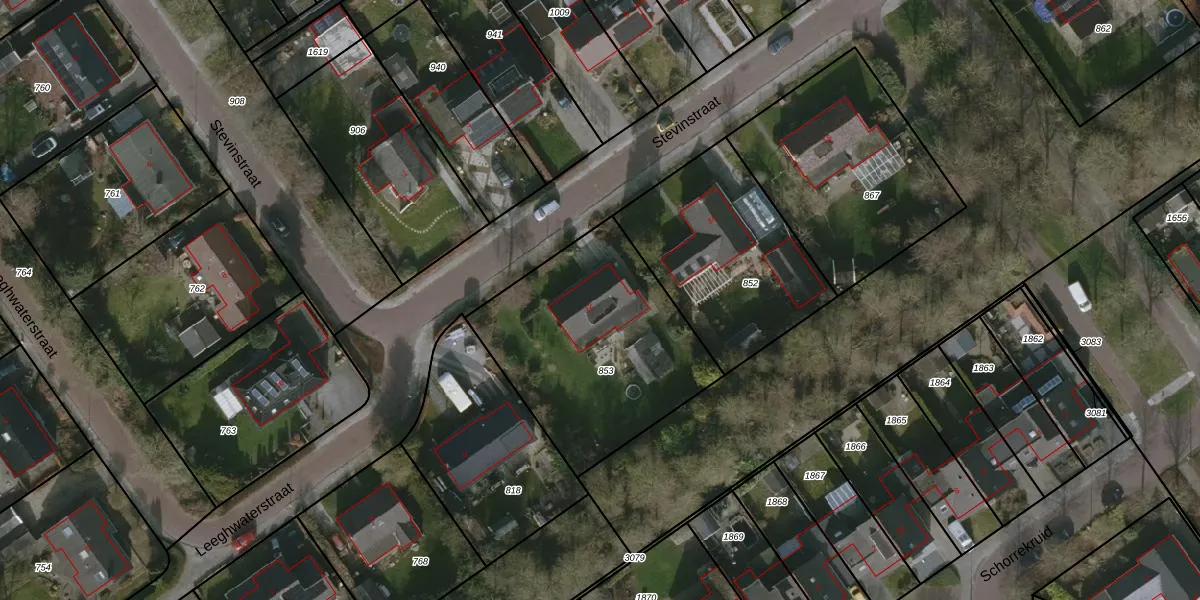 Het perceel waarop Stevinstraat 12 staat heeft een oppervlakte van 975 m². Dit is een groot perceel. De perceeloppervlakte wordt geregistreerd door het Kadaster. Gedetailleerde informatie over de maten van dit perceel kunt u vinden in het rapport Kadastrale kaart met maatvoering van Stevinstraat 12.