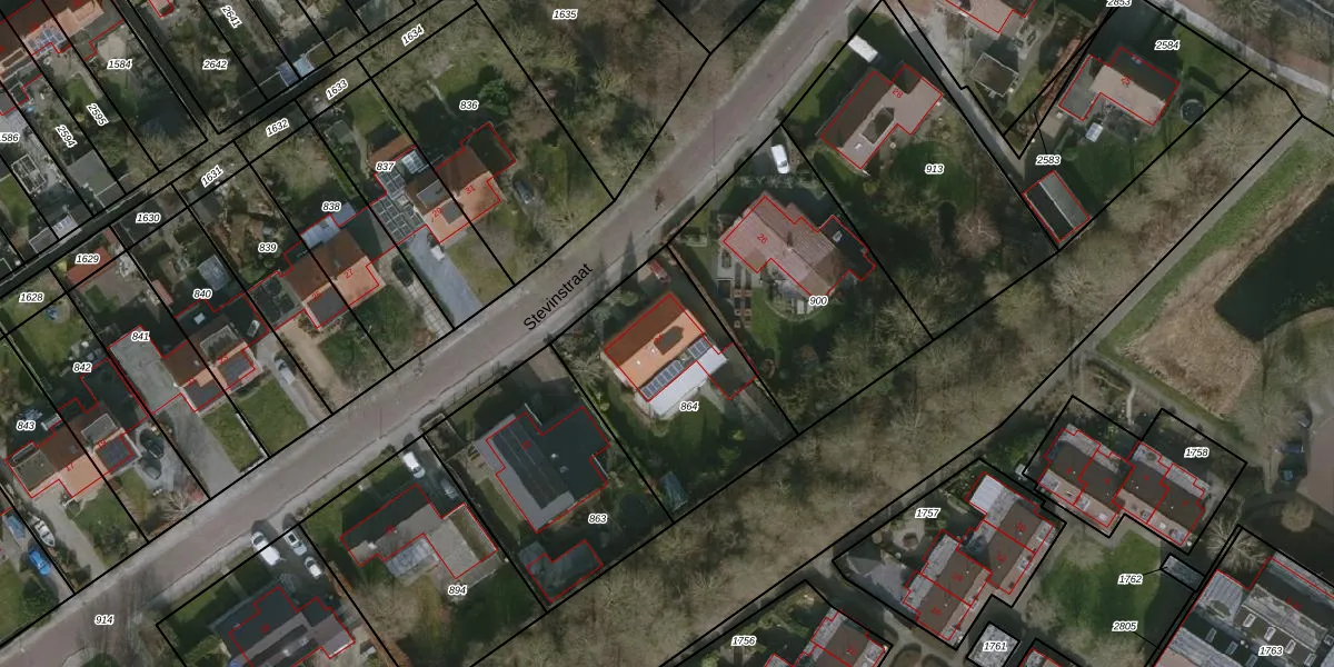 Het perceel waarop Stevinstraat 24 staat heeft een oppervlakte van 776 m². Dit is een groot perceel. De perceeloppervlakte wordt geregistreerd door het Kadaster. Gedetailleerde informatie over de maten van dit perceel kunt u vinden in het rapport Kadastrale kaart met maatvoering van Stevinstraat 24.