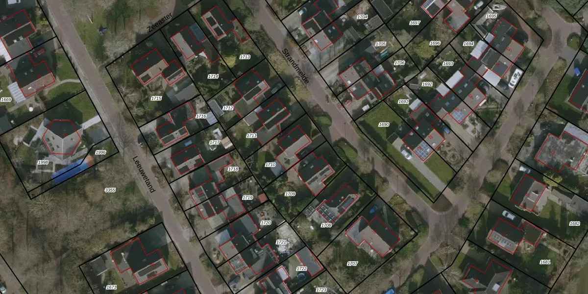 Gebruik de zoekbalk of klik op een perceel voor informatie over de adressen binnen dit perceel.