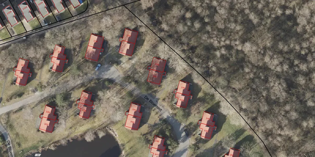 Het perceel waarop De Bloemert 1-40 staat heeft een oppervlakte van 3,4 ha. Dit is een zeer groot perceel. De perceeloppervlakte wordt geregistreerd door het Kadaster. Gedetailleerde informatie over de maten van dit perceel kunt u vinden in het rapport Kadastrale kaart met maatvoering van De Bloemert 1-40.