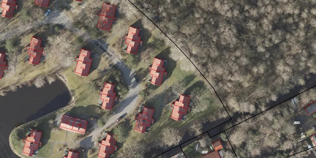 Het perceel waarop De Bloemert 1-48 staat heeft een oppervlakte van 3,4 ha. Dit is een zeer groot perceel. De perceeloppervlakte wordt geregistreerd door het Kadaster. Gedetailleerde informatie over de maten van dit perceel kunt u vinden in het rapport Kadastrale kaart met maatvoering van De Bloemert 1-48.