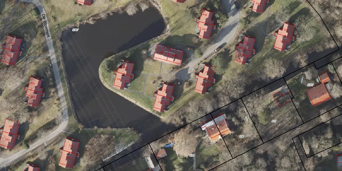Het perceel waarop De Bloemert 1-58 staat heeft een oppervlakte van 3,4 ha. Dit is een zeer groot perceel. De perceeloppervlakte wordt geregistreerd door het Kadaster. Gedetailleerde informatie over de maten van dit perceel kunt u vinden in het rapport Kadastrale kaart met maatvoering van De Bloemert 1-58.