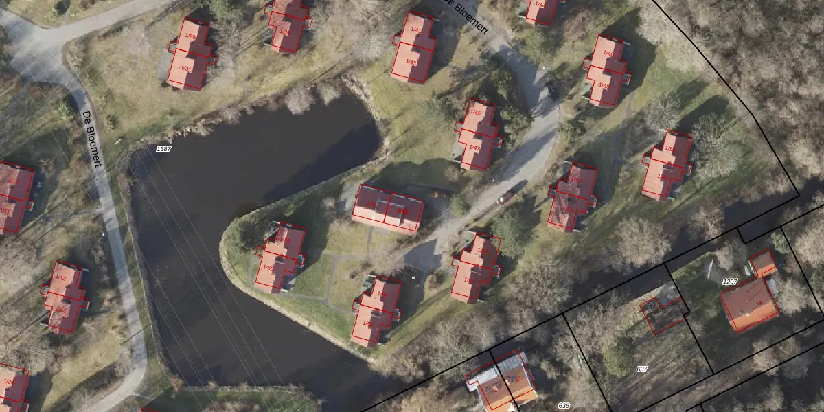 Het perceel waarop De Bloemert 1-55 staat heeft een oppervlakte van 3,4 ha. Dit is een zeer groot perceel. De perceeloppervlakte wordt geregistreerd door het Kadaster. Gedetailleerde informatie over de maten van dit perceel kunt u vinden in het rapport Kadastrale kaart met maatvoering van De Bloemert 1-55.