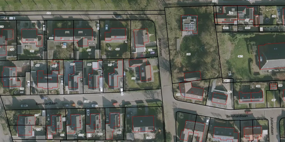 Gebruik de zoekbalk of klik op een perceel voor informatie over de adressen binnen dit perceel.