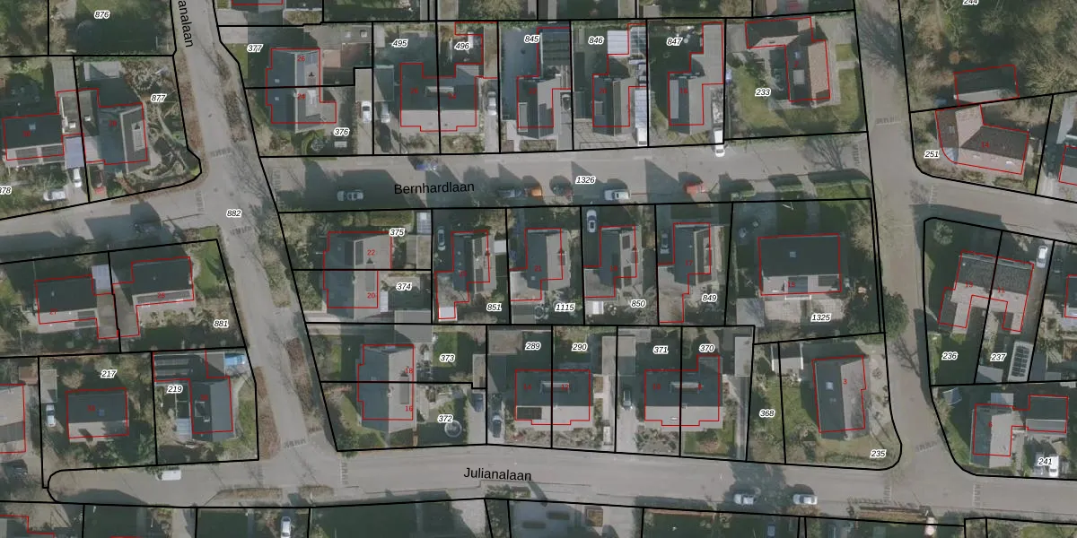 Het perceel waarop Bernhardlaan 21 staat heeft een oppervlakte van 302 m². Dit is een groot perceel. De perceeloppervlakte wordt geregistreerd door het Kadaster. Gedetailleerde informatie over de maten van dit perceel kunt u vinden in het rapport Kadastrale kaart met maatvoering van Bernhardlaan 21.