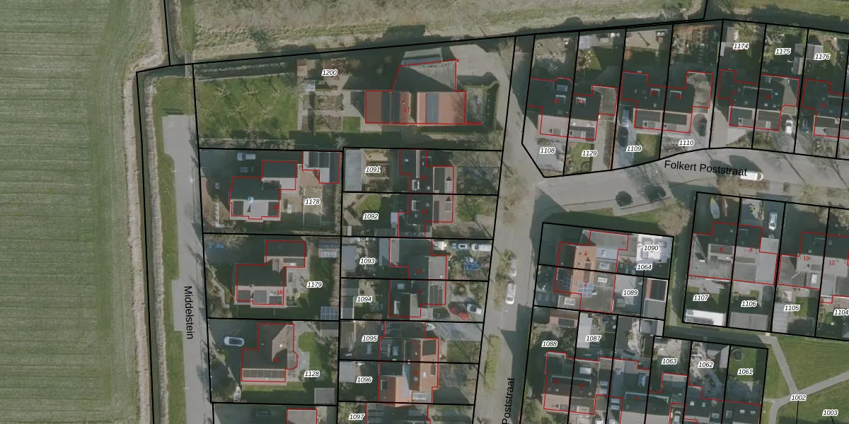 Het perceel waarop Folkert Poststraat 13 staat heeft een oppervlakte van 381 m². Dit is een groot perceel. De perceeloppervlakte wordt geregistreerd door het Kadaster. Gedetailleerde informatie over de maten van dit perceel kunt u vinden in het rapport Kadastrale kaart met maatvoering van Folkert Poststraat 13.
