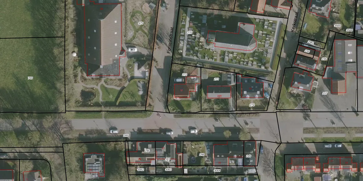 Gebruik de zoekbalk of klik op een perceel voor informatie over de adressen binnen dit perceel.