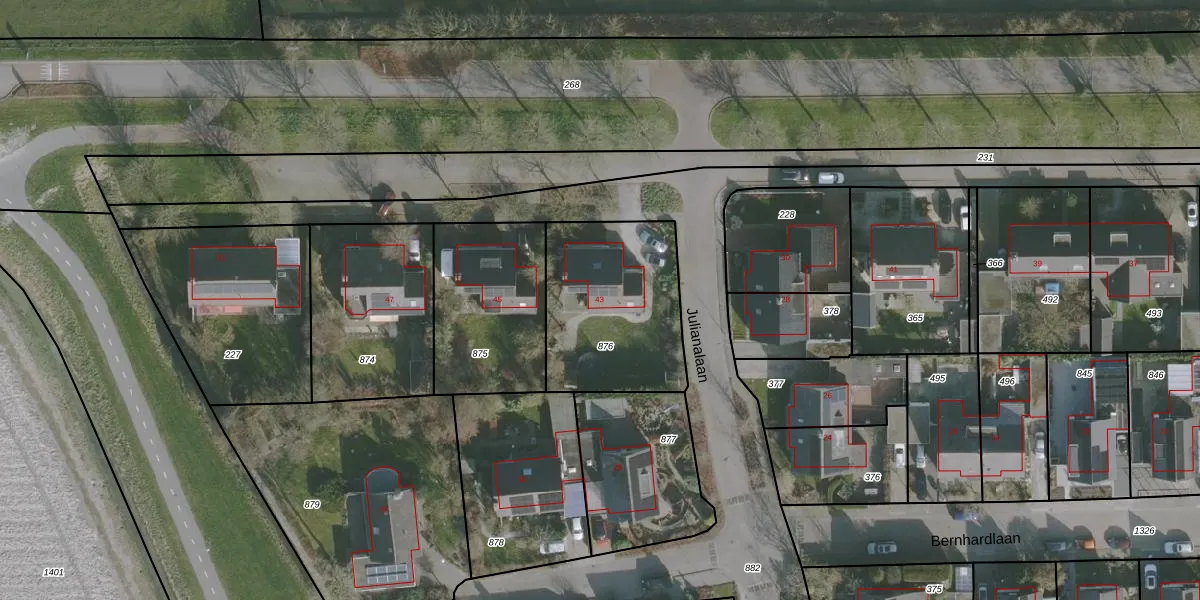 Harlingerstraatweg 43 is gelegen op kadastraal perceel HLG02D876. Deze kadastrale aanduiding is uniek en wordt gebruikt door het Kadaster om eigendomsrechten en andere zakelijke rechten vast te leggen. Het perceel maakt onderdeel uit van de kadastrale gemeente Harlingen.