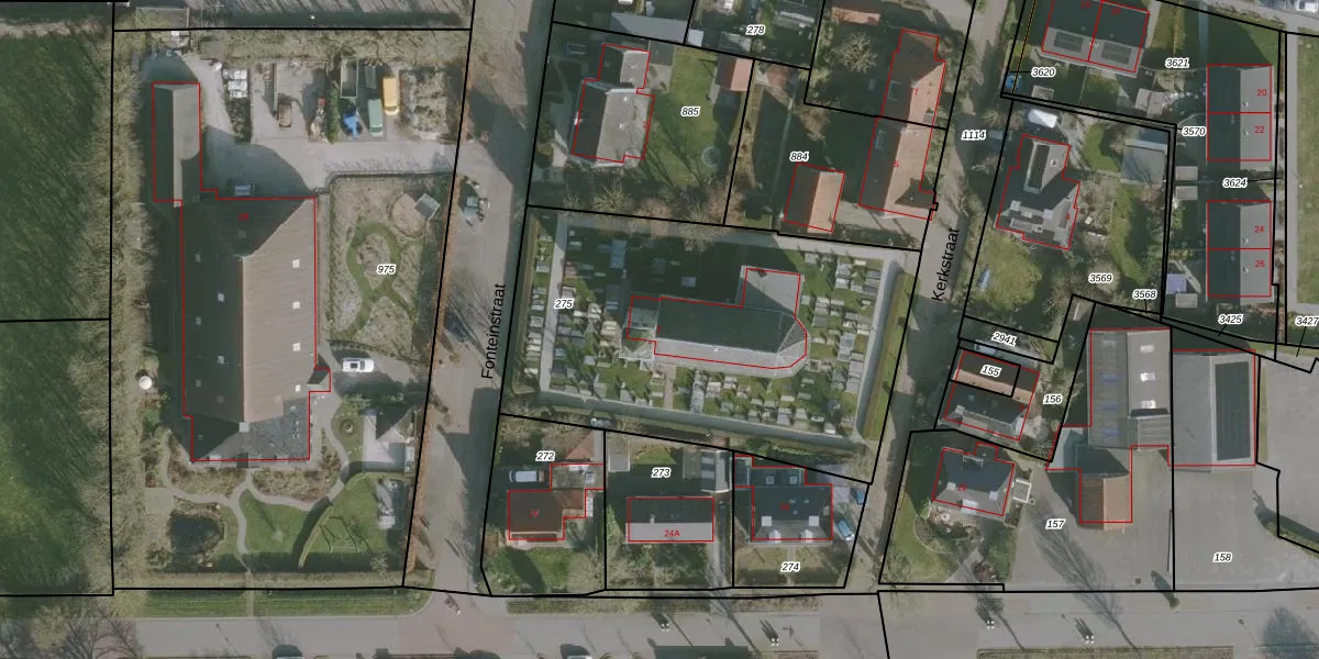 Het perceel waarop Kerkstraat 1 staat heeft een oppervlakte van 2010 m². Dit is een zeer groot perceel. De perceeloppervlakte wordt geregistreerd door het Kadaster. Gedetailleerde informatie over de maten van dit perceel kunt u vinden in het rapport Kadastrale kaart met maatvoering van Kerkstraat 1.