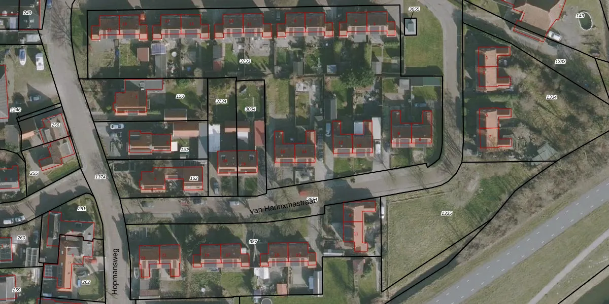 van Harinxmastraat 14 is gelegen op kadastraal perceel HLG02D3733. Deze kadastrale aanduiding is uniek en wordt gebruikt door het Kadaster om eigendomsrechten en andere zakelijke rechten vast te leggen. Het perceel maakt onderdeel uit van de kadastrale gemeente Harlingen.