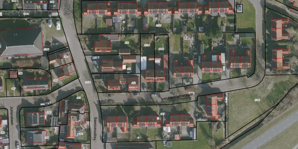 van Harinxmastraat 20 is gelegen op kadastraal perceel HLG02D3734. Deze kadastrale aanduiding is uniek en wordt gebruikt door het Kadaster om eigendomsrechten en andere zakelijke rechten vast te leggen. Het perceel maakt onderdeel uit van de kadastrale gemeente Harlingen.