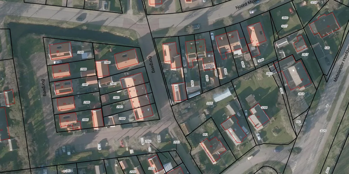 Het perceel waarop Borgweg 3 staat heeft een oppervlakte van 448 m². Dit is een groot perceel. De perceeloppervlakte wordt geregistreerd door het Kadaster. Gedetailleerde informatie over de maten van dit perceel kunt u vinden in het rapport Kadastrale kaart met maatvoering van Borgweg 3.