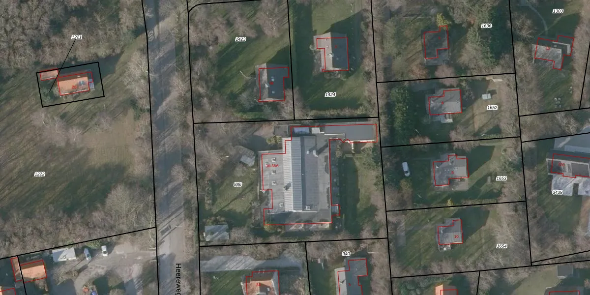 Het perceel waarop Heereweg 36 staat heeft een oppervlakte van 2615 m². Dit is een zeer groot perceel. De perceeloppervlakte wordt geregistreerd door het Kadaster. Gedetailleerde informatie over de maten van dit perceel kunt u vinden in het rapport Kadastrale kaart met maatvoering van Heereweg 36.