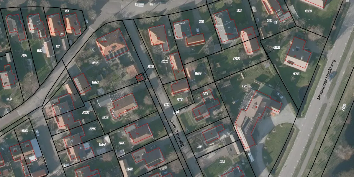 Gebruik de zoekbalk of klik op een perceel voor informatie over de adressen binnen dit perceel.