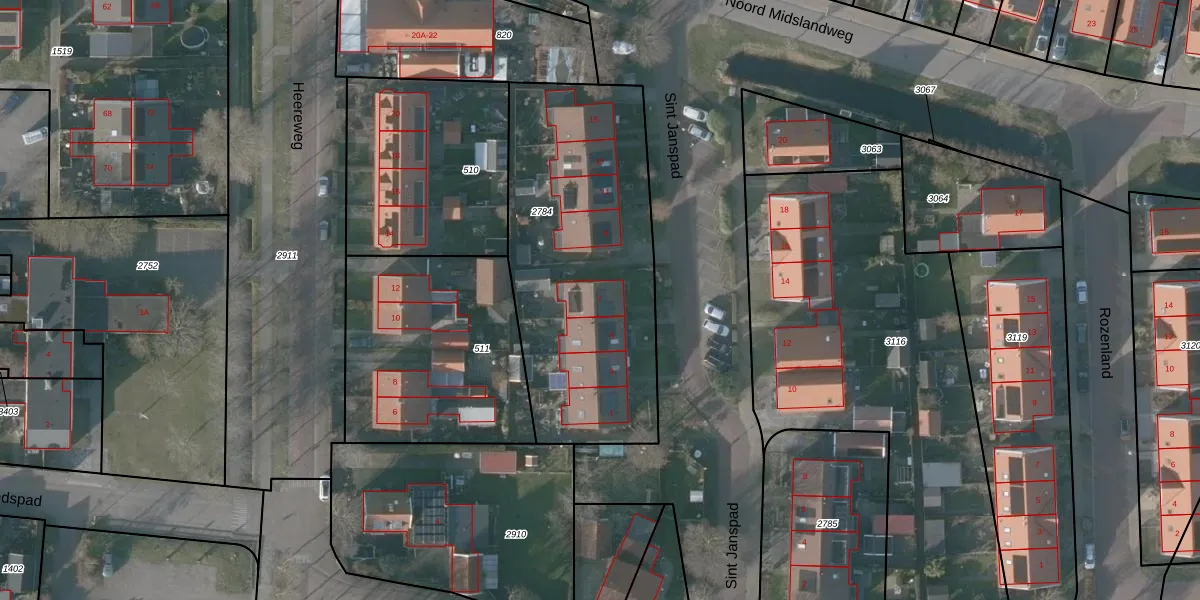Het perceel waarop Sint Janspad 7 staat heeft een oppervlakte van 1365 m². Dit is een zeer groot perceel. De perceeloppervlakte wordt geregistreerd door het Kadaster. Gedetailleerde informatie over de maten van dit perceel kunt u vinden in het rapport Kadastrale kaart met maatvoering van Sint Janspad 7.