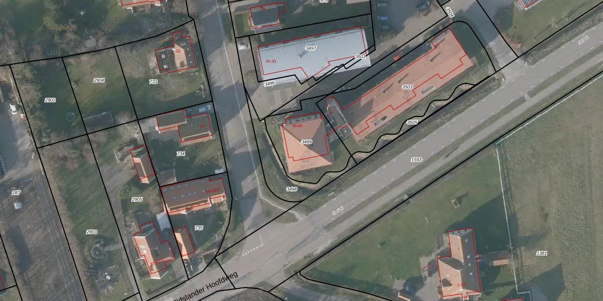 Het adres ligt op het perceel TSL00-H-3499, dat zich in de kadastrale gemeente Terschelling bevindt. Het perceel is 491 m² groot. Dat is kleiner dan de gemiddelde perceeloppervlakte in Terschelling, dat op 11,4 ha ligt. Het kleinste perceel in de kadastrale gemeente is 0 m² groot. De grootste perceeloppervlakte is 95,16 km². Op het perceel zijn 6 adressen aanwezig. In de Basisregistratie Kadaster (BRK) werden de grenzen van het perceel geregistreerd op 31-08-2023.