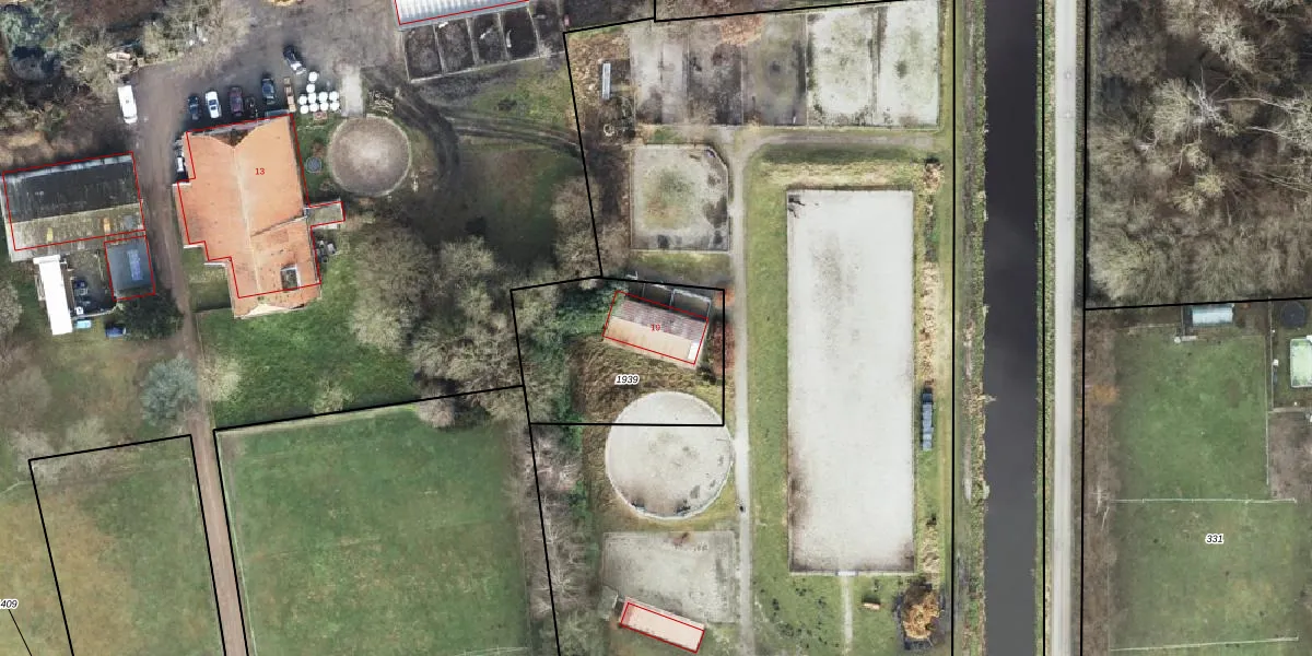 Het adres is gelegen op perceel 1939 in de sectie M en de kadastrale gemeente Midwolda. De kadastrale aanduiding is aldus MWD01-M-1939. Het perceel is 665 m² groot. Dat is kleiner dan de gemiddelde perceeloppervlakte in Midwolda, dat op 1,2 ha ligt. Het kleinste perceel in de kadastrale gemeente is 0 m² groot. De grootste perceeloppervlakte is 76,6 ha. Dit is het enige adres dat aanwezig is op het perceel. In de Basisregistratie Kadaster (BRK) werden de grenzen van het perceel geregistreerd op 02-03-2011.