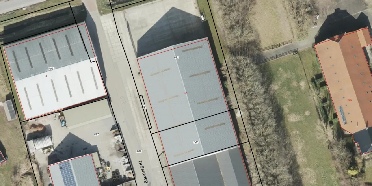 Dollardweg 1-A is gelegen op kadastraal perceel MWD01L981. Deze kadastrale aanduiding is uniek en wordt gebruikt door het Kadaster om eigendomsrechten en andere zakelijke rechten vast te leggen. Het perceel maakt onderdeel uit van de kadastrale gemeente Midwolda.