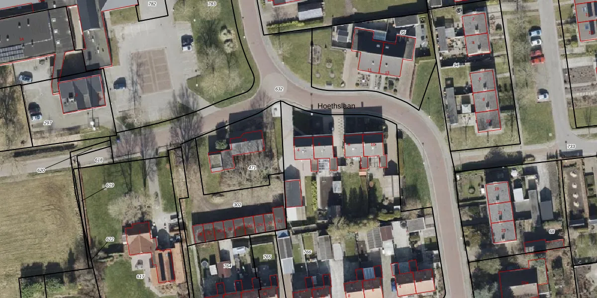 Hoethslaan 4 is gelegen op kadastraal perceel MWD01K766. Deze kadastrale aanduiding is uniek en wordt gebruikt door het Kadaster om eigendomsrechten en andere zakelijke rechten vast te leggen. Het perceel maakt onderdeel uit van de kadastrale gemeente Midwolda.