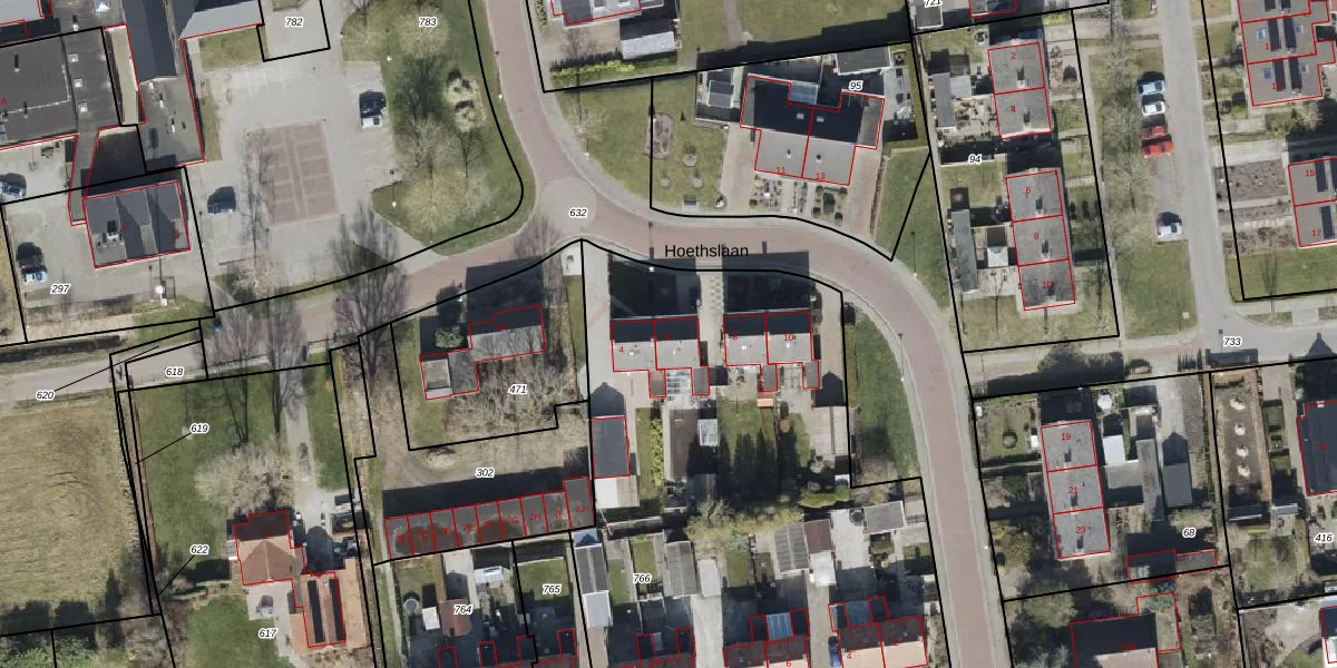 Hoethslaan 6 is gelegen op kadastraal perceel MWD01K766. Deze kadastrale aanduiding is uniek en wordt gebruikt door het Kadaster om eigendomsrechten en andere zakelijke rechten vast te leggen. Het perceel maakt onderdeel uit van de kadastrale gemeente Midwolda.