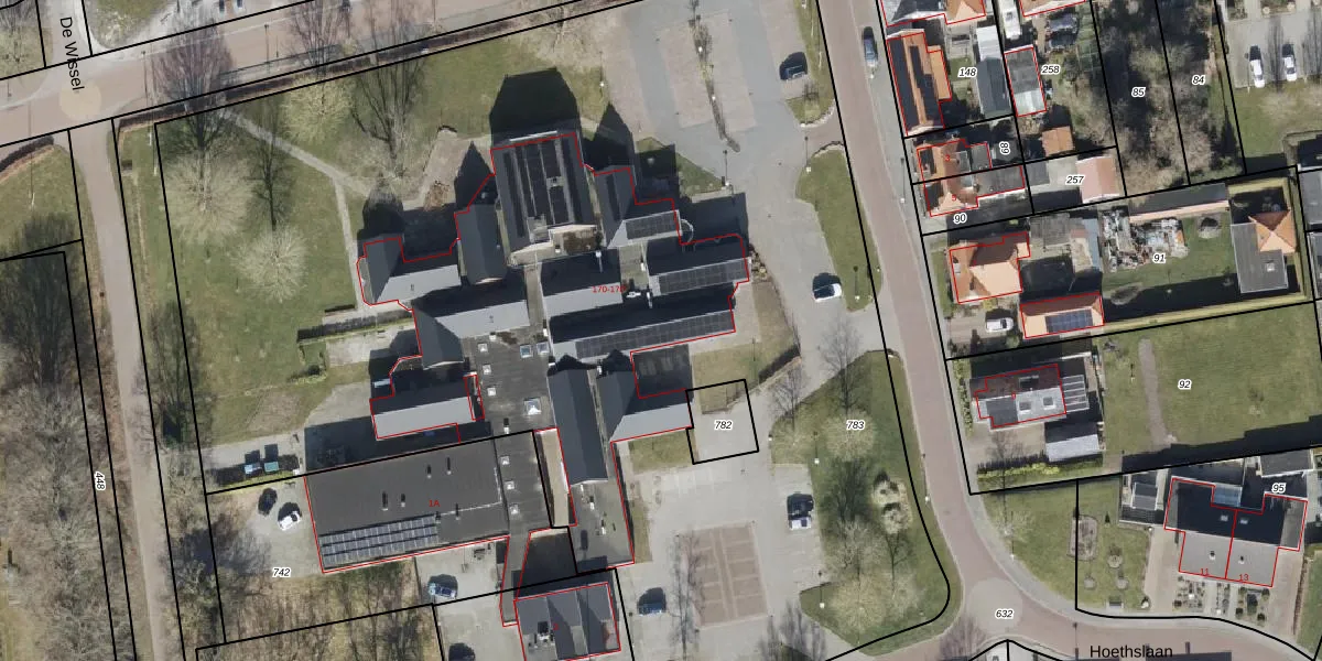 Het perceel waarop Hoofdweg 170-B staat heeft een oppervlakte van 8226 m². Dit is een zeer groot perceel. De perceeloppervlakte wordt geregistreerd door het Kadaster. Gedetailleerde informatie over de maten van dit perceel kunt u vinden in het rapport Kadastrale kaart met maatvoering van Hoofdweg 170-B.
