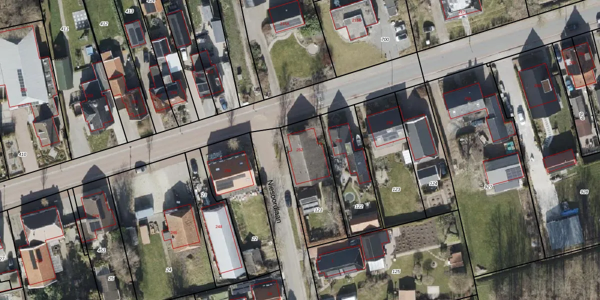 Gebruik de zoekbalk of klik op een perceel voor informatie over de adressen binnen dit perceel.