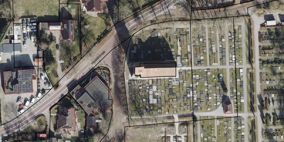 Hoofdstraat 134 is gelegen op kadastraal perceel LEE01C1797. Deze kadastrale aanduiding is uniek en wordt gebruikt door het Kadaster om eigendomsrechten en andere zakelijke rechten vast te leggen. Het perceel maakt onderdeel uit van de kadastrale gemeente Leek.