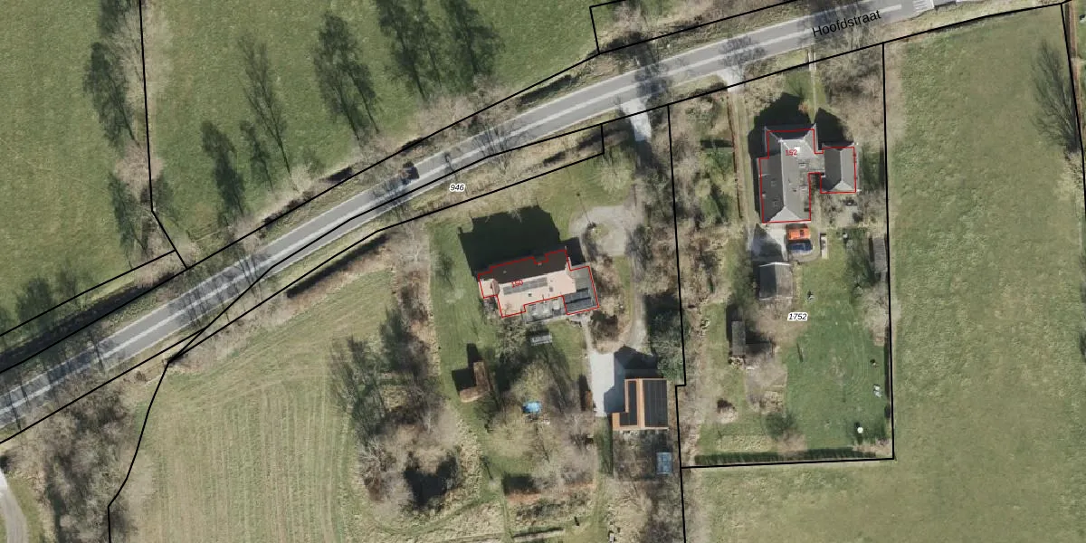 Het perceel waarop Hoofdstraat 150 staat heeft een oppervlakte van 1,6 ha. Dit is een zeer groot perceel. De perceeloppervlakte wordt geregistreerd door het Kadaster. Gedetailleerde informatie over de maten van dit perceel kunt u vinden in het rapport Kadastrale kaart met maatvoering van Hoofdstraat 150.