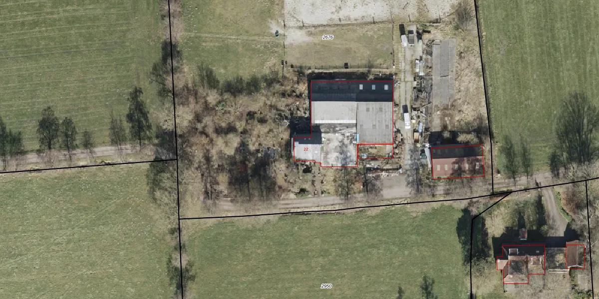 Het perceel waarop Pasop 22 staat heeft een oppervlakte van 1,2 ha. Dit is een zeer groot perceel. De perceeloppervlakte wordt geregistreerd door het Kadaster. Gedetailleerde informatie over de maten van dit perceel kunt u vinden in het rapport Kadastrale kaart met maatvoering van Pasop 22.