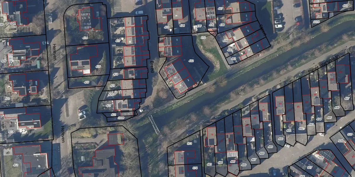 Het perceel waarop Breed 1 staat heeft een oppervlakte van 665 m². Dit is een groot perceel. De perceeloppervlakte wordt geregistreerd door het Kadaster. Gedetailleerde informatie over de maten van dit perceel kunt u vinden in het rapport Kadastrale kaart met maatvoering van Breed 1.