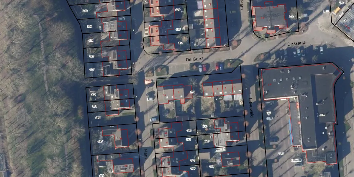 Het perceel waarop De Garst 9 staat heeft een oppervlakte van 1214 m². Dit is een zeer groot perceel. De perceeloppervlakte wordt geregistreerd door het Kadaster. Gedetailleerde informatie over de maten van dit perceel kunt u vinden in het rapport Kadastrale kaart met maatvoering van De Garst 9.