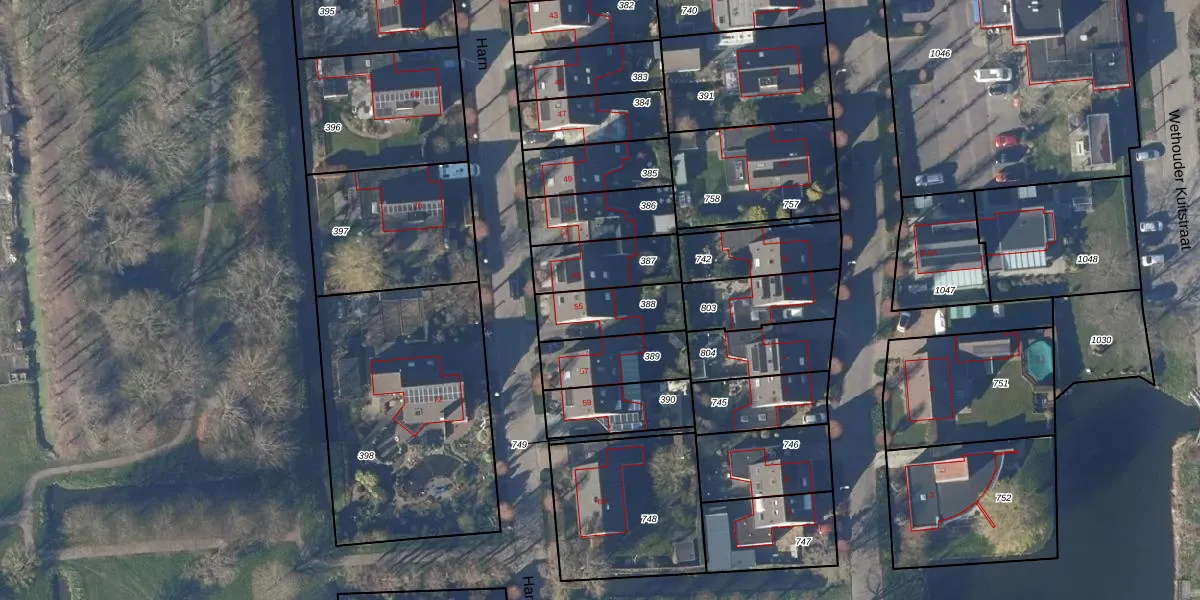 Gebruik de zoekbalk of klik op een perceel voor informatie over de adressen binnen dit perceel.