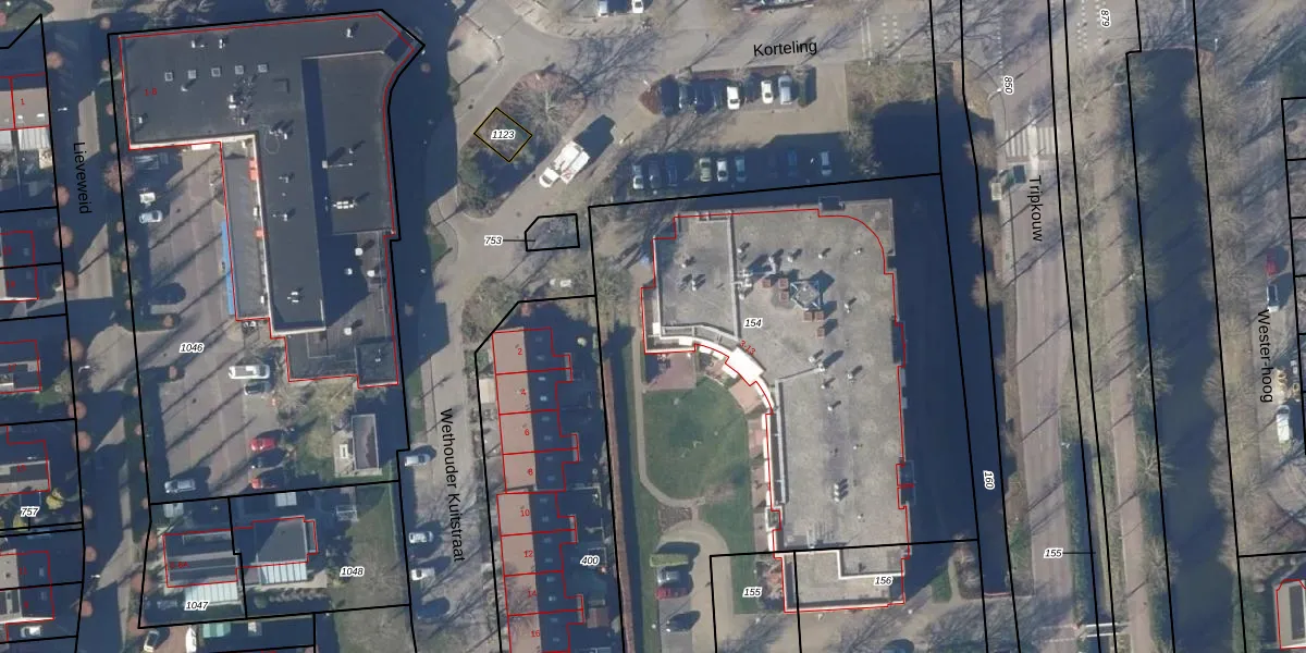 Het perceel waarop Korteling 43 staat heeft een oppervlakte van 3410 m². Dit is een zeer groot perceel. De perceeloppervlakte wordt geregistreerd door het Kadaster. Gedetailleerde informatie over de maten van dit perceel kunt u vinden in het rapport Kadastrale kaart met maatvoering van Korteling 43.