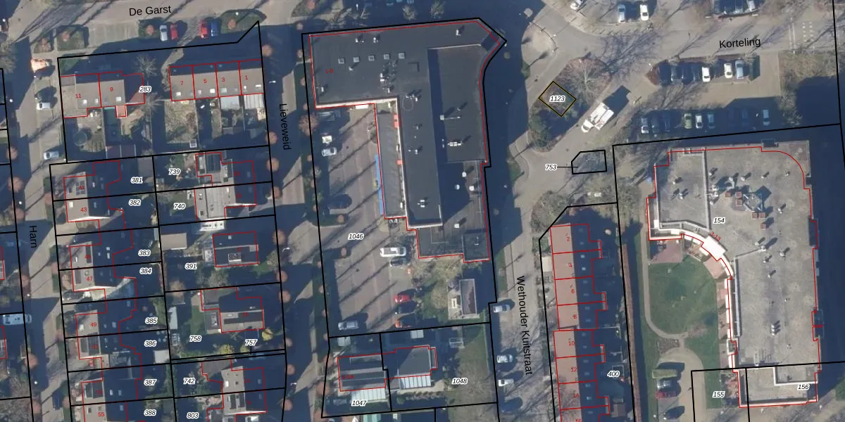 Het perceel waarop Lieveweid 8 staat heeft een oppervlakte van 2994 m². Dit is een zeer groot perceel. De perceeloppervlakte wordt geregistreerd door het Kadaster. Gedetailleerde informatie over de maten van dit perceel kunt u vinden in het rapport Kadastrale kaart met maatvoering van Lieveweid 8.