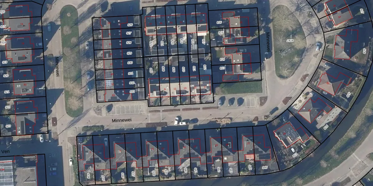 Het perceel waarop Minnewei 13 staat heeft een oppervlakte van 145 m². Dit is een middelgroot perceel. De perceeloppervlakte wordt geregistreerd door het Kadaster. Gedetailleerde informatie over de maten van dit perceel kunt u vinden in het rapport Kadastrale kaart met maatvoering van Minnewei 13.